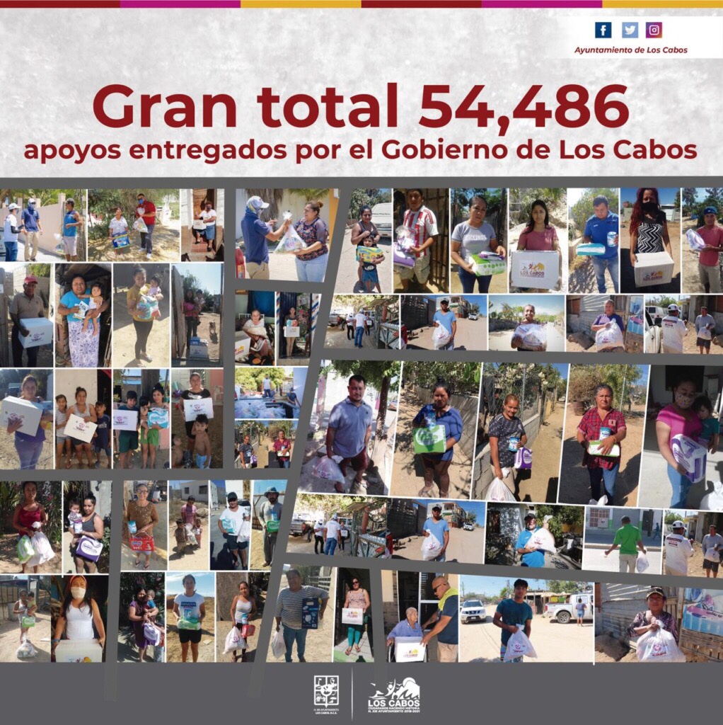 La directora municipal de Atención Ciudadana en Los Cabos, Laura Brito Camacho, dio a conocer que del 30 de marzo al 06 de junio del año 2020, la XIII Administración a través de las brigadas de servidores públicos entregaron 54 mil 486 apoyos asistenciales a la ciudadanía más vulnerable por la pandemia del COVID-19.