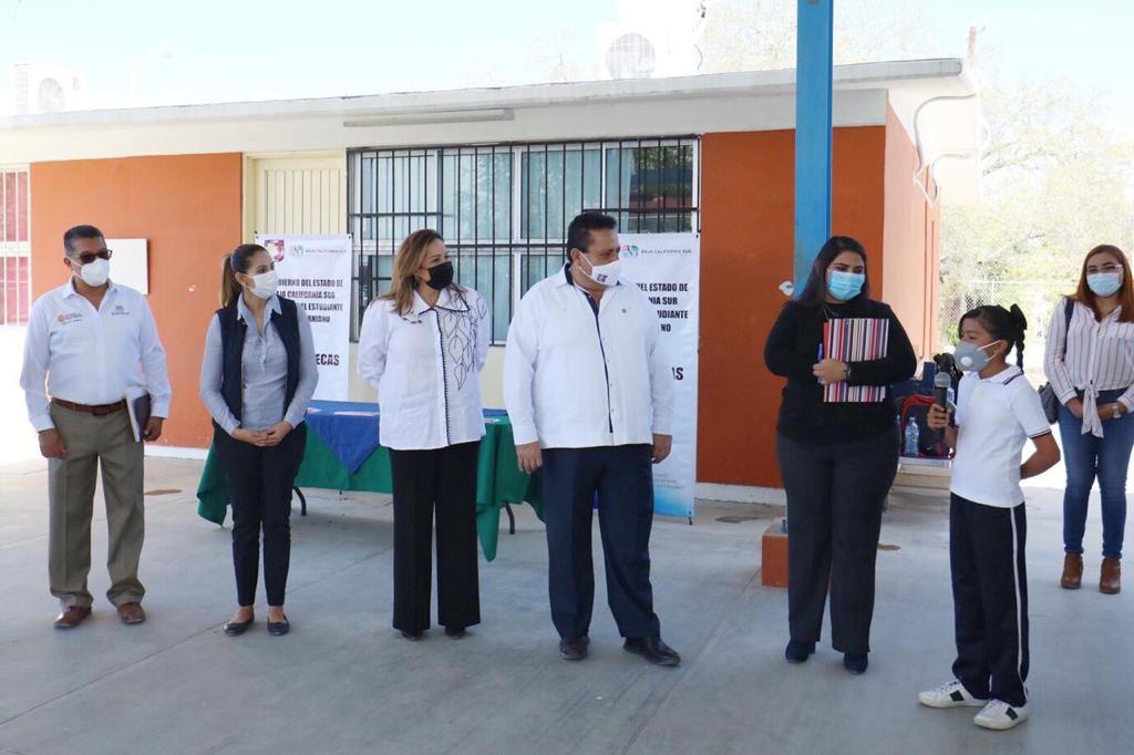 En gira de trabajo por el municipio de Los Cabos, el gobernador, Carlos Mendoza Davis, hizo entrega de manera simbólica el pago de becas del Patronato del Estudiante Sudcaliforniano por medio de tarjeta electrónica que, en esta primera etapa, incluirá a mil 177 alumnas y alumnos de la entidad.