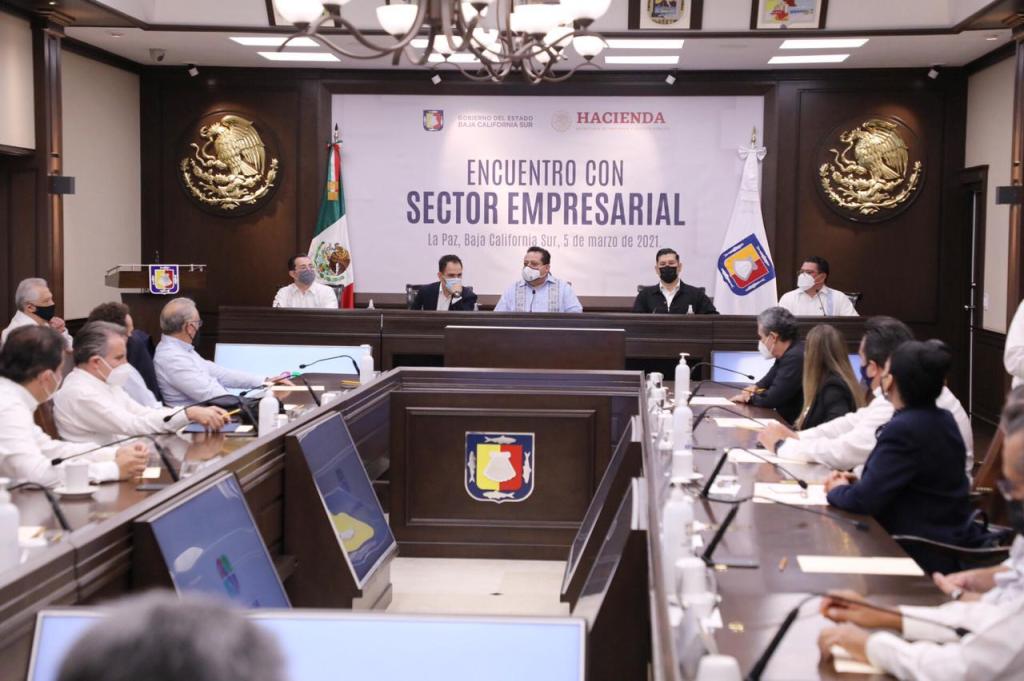 Más tarde, en encuentro con empresarios, el ejecutivo estatal destacó la solidaridad, colaboración y apoyo del sector para hacer frente a los grandes retos que enfrenta Baja California Sur, por lo que dijo es necesario continuar con este tipo de ejercicios en donde se intercambian puntos de vista para llevar a cabo acciones conjuntas para que, hombro con hombro, superar los problemas, dijo luego de reconocer la disposición del titular de la SHyCP para escuchar y comprometerse con los sudcalifornianos.