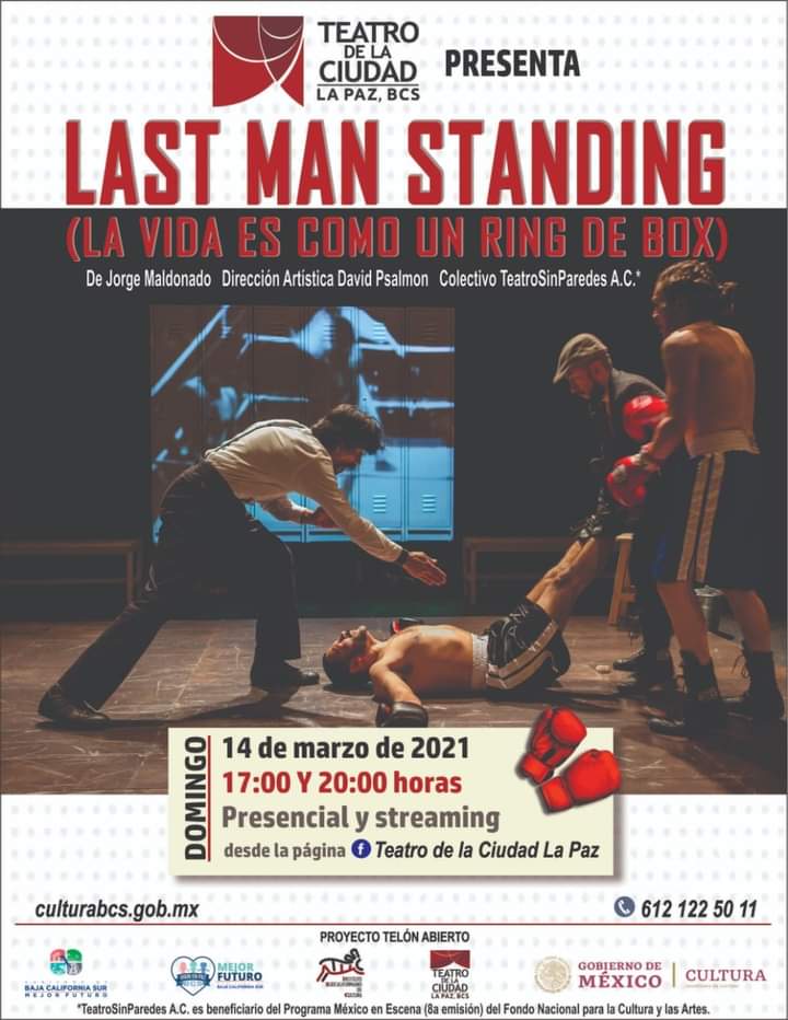 Para el Instituto Sudcaliforniano de Cultura (ISC), es de suma importancia brindar eventos que contribuyan al desarrollo cultural de los habitantes del Estado, por ello el domingo 14 de marzo el Teatro de la Ciudad de La paz presentará la obra “Last Man Standing”, escrita por Jorge Maldonado y dirigida por el francés David Psalmon, así lo mencionó la directora del Teatro de la Ciudad Sylvia Rittner.