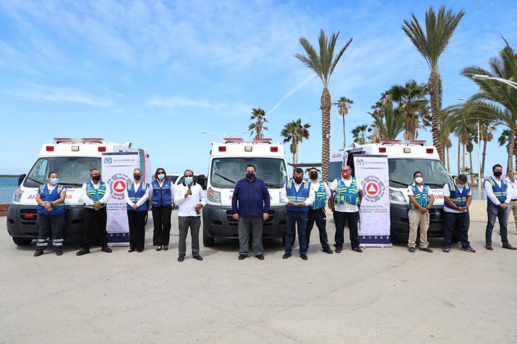 Con la entrega de tres nuevas ambulancias a la subsecretaría de Protección Civil, en Baja California Sur se fortalece la atención prehospitalaria y el cuidado de la salud de las y los sudcalifornianos en situación de emergencia y, en este esfuerzo coordinado, el Gobierno del Estado asume con más compromiso la protección civil en la comunidad con mejores recursos”, señaló el gobernador, Carlos Mendoza Davis.