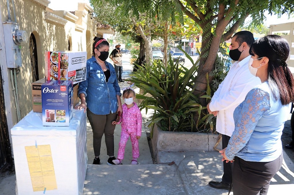 En compañía de Iliana Hernández Unzón, subsecretaria de Desarrollo Social y Humano (SDSH), se hicieron llegar directamente a las personas beneficiarias los equipos, herramientas e insumos con los que pondrán iniciar o restablecer sus negocios como son: tortillerías, venta de hielitos, frapes, renta de mobiliario y equipo, tiendas de abarrotes, taller de costura, estéticas, elaboración y venta de comida en general como: postres, tamales, buñuelos, entre otros.