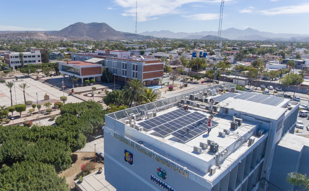 El Gobierno del Estado inició la instalación de plantas solares en Palacio de Gobierno y ocho edificios públicos más en la ciudad de La Paz que permitirán ahorrar unos 3.2 millones de pesos al año, dejarán de emitir 775 toneladas de dióxido de carbono y tendrán una vida útil de 30 a 40 años.