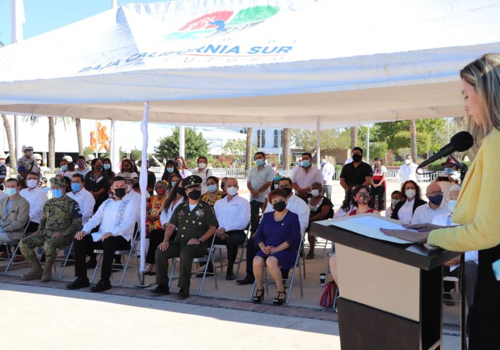 Durante este acto cívico, el cual tuvo como oradora oficial a la directora del Instituto Sudcaliforniano de la Juventud, Alejandra Varela Gutiérrez, y donde se contó con la presencia y participación de las Logias Masónicas de Sudcaliforniana y de la Asociación de Oaxaqueños radicados en la entidad, se recordó a Benito Juárez, como un ejemplo de patriotismo y respeto a las instituciones.