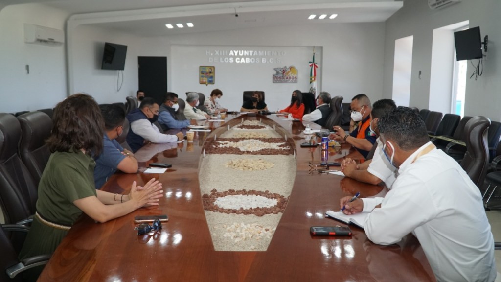 Los Cabos, B.C.S. Servidores públicos del Gobierno que preside Lorena Cortés Torralbo, se reunieron con el presidente de la Asociación de Empresarios de El Médano, Leonardo Perli Isea, así como con el comisionado de la Asociación de Colonos de El Médano, Ricardo Arauz Gamiño, para coordinar los trabajos que se estarán realizando esta semana santa en cuestión de seguridad en salud para los usuarios de playas, en específico de la playa El Médano en Cabo San Lucas.