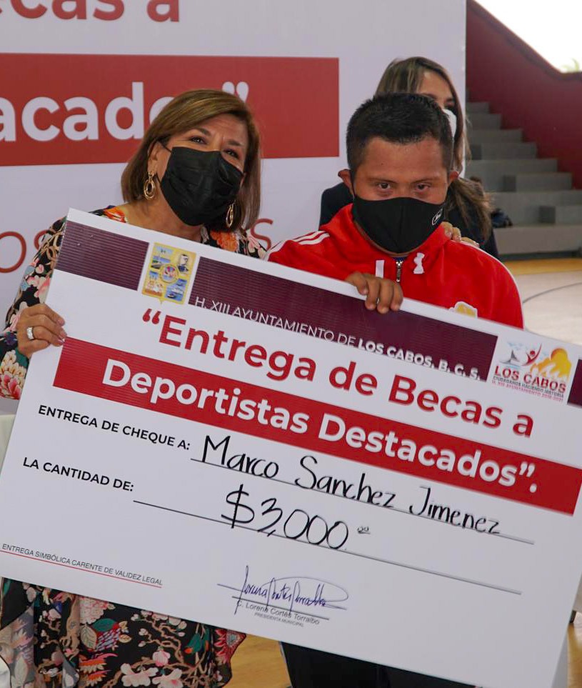 Los Cabos, B.C.S. La alcaldesa de Los Cabos, Lorena Cortés Torralbo, encabezó la primera entrega de $1 millón 360 mil pesos en becas para 129 deportistas cabeños de alto rendimiento, donde reconoció la importancia del esfuerzo que realizan los atletas para poner el nombre de Los Cabos en alto: “estoy muy contenta, porque ahora personalmente conozco a quienes han hecho que esta historia del municipio de Los Cabos tenga éxito”, enfatizó la primer edil cabeña.