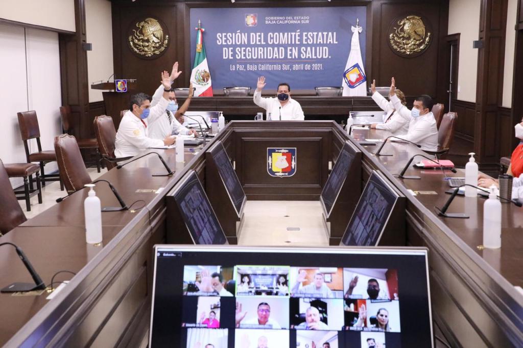 En la sesión virtual de trabajo a la que acudieron los representantes de todas las instituciones de salud y de los ayuntamientos, se determinó que los cinco municipios permanezcan en el nivel 3 del Sistema de Alertas Sanitarias, se aprobó el protocolo sanitario para disminuir riesgos de contagio por COVID-19 en eventos electorales del estado, el cual se puede consultar en: https://coronavirus.bcs.gob.mx/protocolos/ y se expresó la confianza en que la atención generalizada de la sociedad a las decisiones de este Comité, produzcan el resultado que se busca y que es que se mantenga en niveles aceptables los contagios, además de hacer un reconocimiento a Protección Civil y a las instituciones de la Mesa de Seguridad de Baja California Sur que contribuyeron a regular aforo en playas.