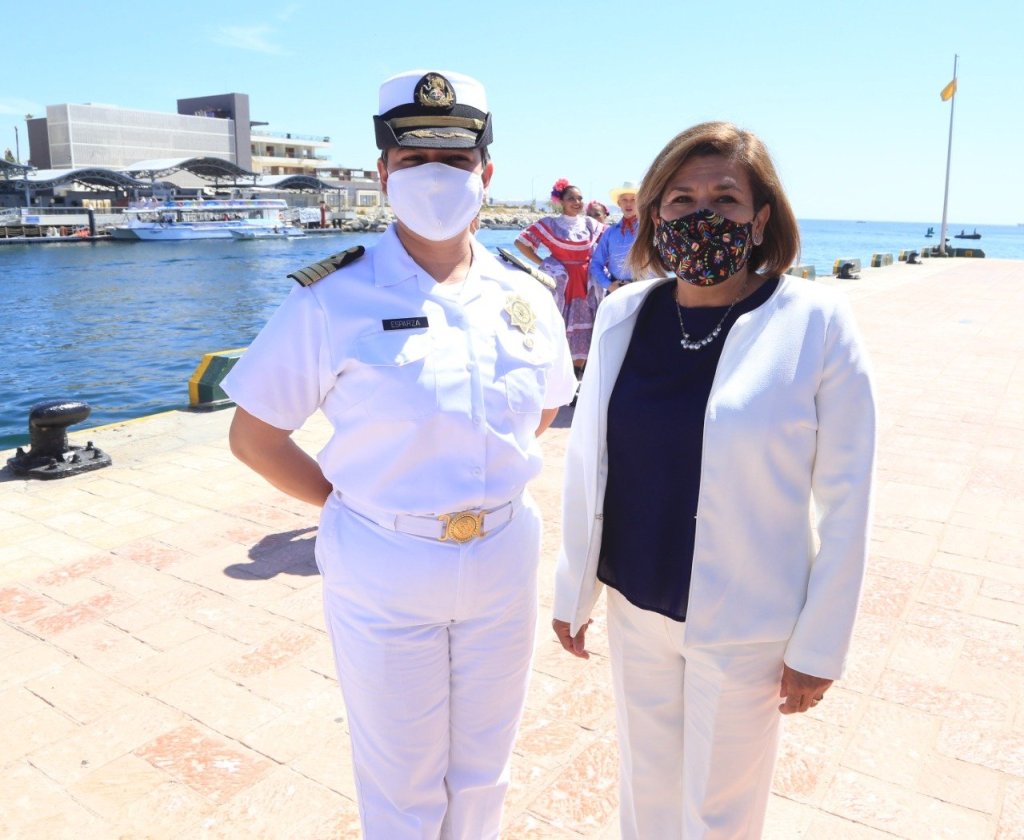 Los Cabos, B.C.S. Cada día son más las mujeres con oportunidades de ejercer puestos de responsabilidad en todos los ámbitos, tal es el caso de Marisol Esparza Aguilera, capitana de altura y titular de la Capitanía de Puerto de San José del Cabo, quien tuvo un encuentro con las autoridades del XIII Ayuntamiento de Los Cabos, durante la despedida del Buque Escuela ARM Cuauhtémoc BE-01 de la Armada de México en el puerto de Cabo San Lucas.