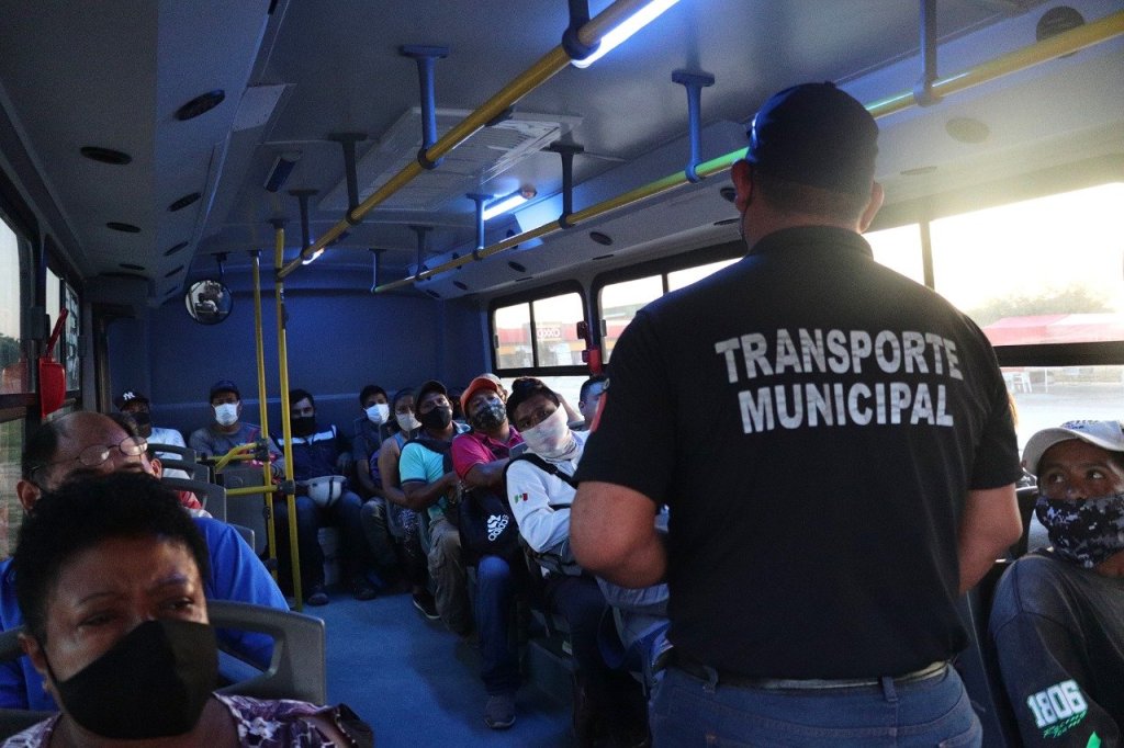Al respecto, los elementos de la Dirección General de Seguridad Pública, Policía Preventiva y Tránsito Municipal, informaron que los recorridos que se llevan a cabo sobre las unidades son aleatorios y se realizan en puntos estratégicos de todas las colonias de la entidad, dando las indicaciones correspondientes a la población e invitando a acatar los lineamientos que han dictado las autoridades del sector Salud; en ese sentido, se destaca que si alguien no cuenta con cubrebocas, se le proporciona uno para que pueda abordar.