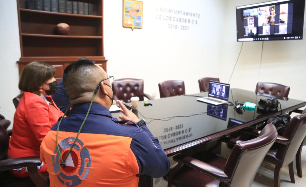 Los Cabos, B.C.S. En una reunión virtual, integrantes de la Mesa Municipal de Seguridad en Los Cabos coincidieron en que no se debe bajar la guardia en el tema del COVID-19; por ello, se siguen realizando operativos para invitar a la población a que utilice correctamente el cubrebocas, se aplique constantemente gel antibacterial y a que respeten el aforo permitido del 50 %, así como el distanciamiento físico.