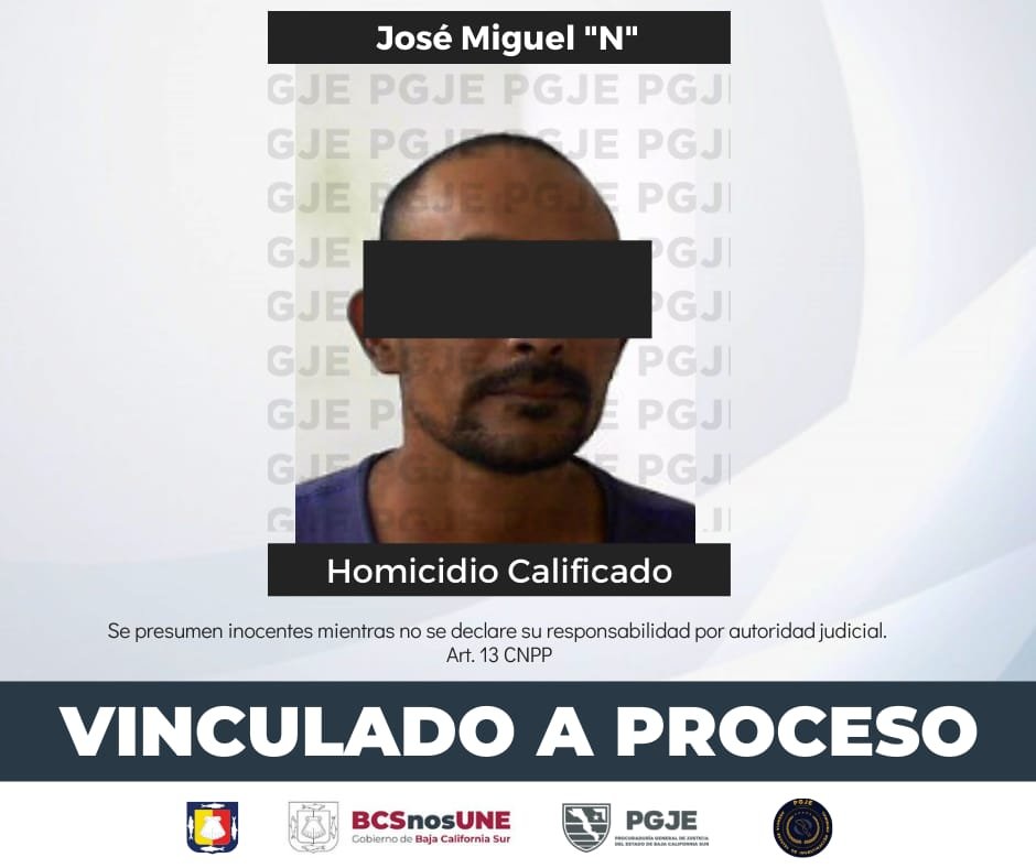 José Miguel “N” de apodo “El Miguelito», fue vinculado a proceso penal por homicidio calificado con saña y se encuentra en prisión preventiva; el hecho ocurrió el sábado 01 de enero de 2022 en un domicilio que se ubica en el poblado de Ignacio Zaragoza, municipio de Comondú, a donde llegó el imputado discutió con la víctima para después lanzarle combustible y prenderle fuego; José Alfredo “N” de apodo “El topo” sufrió quemaduras de segundo grado que lo provocaron la muerte.